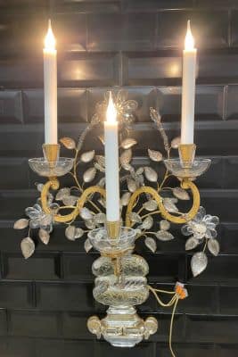 Le travail du cristal met en valeur la structure légère et élancée des bras, caractéristique des productions de la maison Baguès du XXᵉ siècle.